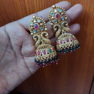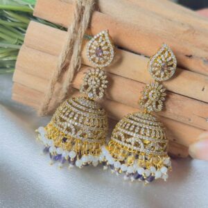 Add a royal touch to your ensemble with this elegant Kundan Jhumka, a timeless piece inspired by traditional Indian heritage. Crafted with intricate detailing and embellished with radiant Kundan stones, this jhumka exudes classic beauty and regal charm. The dome-shaped design paired with delicate hanging beads or pearls adds graceful movement and sparkle to every look. Perfect for weddings, festive occasions, and ethnic celebrations, this Kundan jhumka pairs beautifully with sarees, lehengas, and Anarkalis—making it a must-have for every jewelry lover who adores rich, cultural elegance.