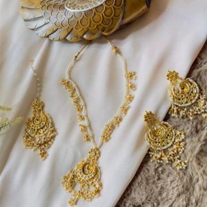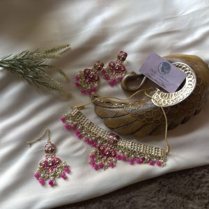 Premium Kundan short necklace with Earrings and Tikkas