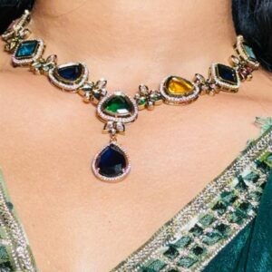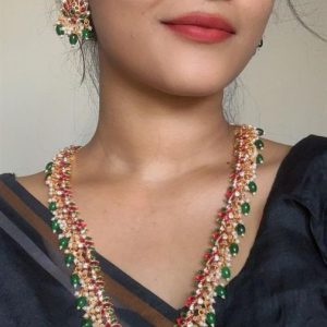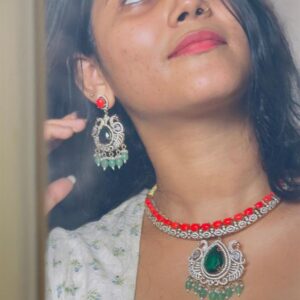 Pavalam Exclusive Emerald Antique Necklace with Earrings