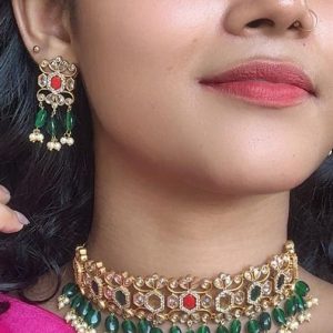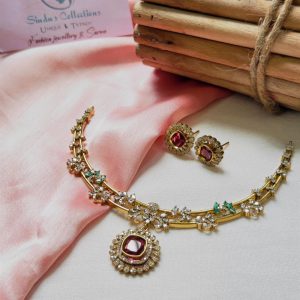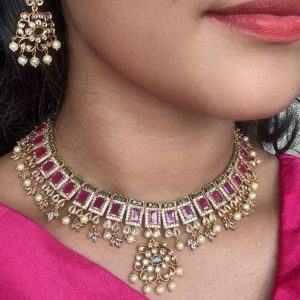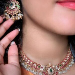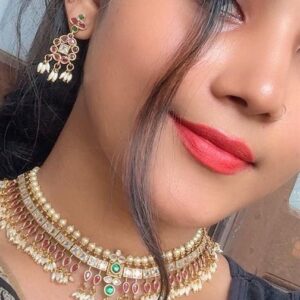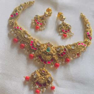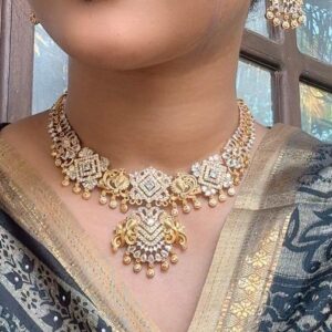 රු5,200.00Premium Antique Gold Ad Necklace(Pearl White)