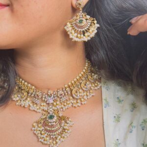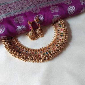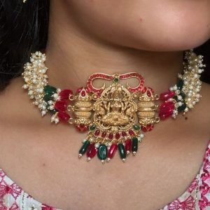 Premium quality antique gold with mint green and red pearl Luxmi necklace