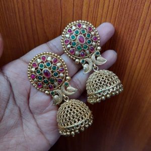 Add sparkle to your traditional look with this elegant AD Jhumka, crafted to perfection with shimmering American Diamond stones. Designed with a classic dome-shaped silhouette and intricate detailing, this jhumka offers the perfect blend of tradition and modern glamour. The lightweight design makes it comfortable to wear for long hours, while the brilliant diamond-like shine ensures all eyes are on you. Ideal for festive occasions, weddings, parties, or everyday ethnic wear, this AD Jhumka is a timeless addition to any jewelry collection—bringing grace, charm, and a touch of luxury to every outfit.