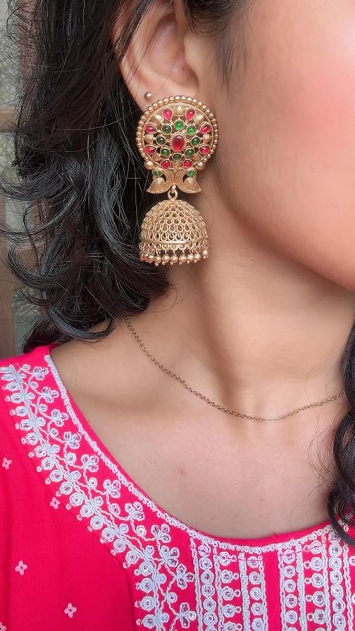 Discover the timeless elegance of Antique Gold Jhumkas, traditional Indian earrings known for their intricate designs and rich history. Explore a variety of styles, including Temple Jhumkas, Bridal Jhumkas, and Stone Jhumkas, each crafted to add a touch of opulence to your look. Perfect for special occasions and everyday wear, these exquisite pieces blend classic charm with modern flair.