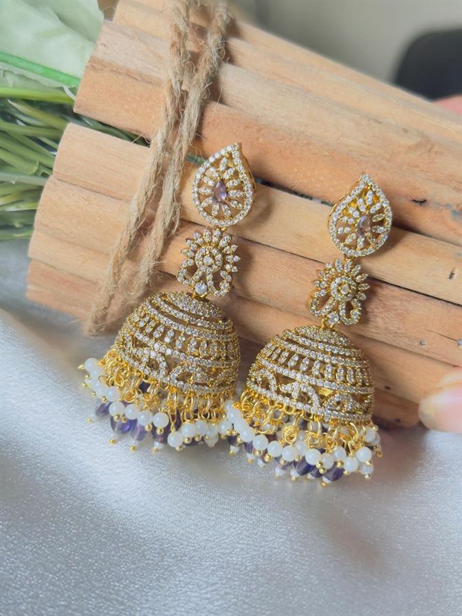 Add a touch of vintage glamour to your look with this exquisite Victorian Diamond Jhumka. Inspired by classic Victorian design, this stunning piece features intricate filigree work adorned with shimmering high-quality diamond stones, creating a perfect blend of old-world charm and modern elegance. The elegant drop design of the jhumka adds graceful movement, making it an ideal choice for weddings, parties, festive occasions, or ethnic celebrations. Crafted with fine attention to detail and finished with a luxurious antique polish, these jhumkas are a timeless addition to any jewelry collection, perfect for the woman who loves to stand out with sophistication.