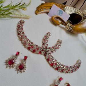 Elevate your ethnic collection with our Premium Quality Antique Gold Luxmi Necklace, adorned with stunning mint green and red pearls. This beautifully crafted necklace combines traditional charm with modern elegance, featuring intricate antique gold detailing and vibrant pearls that add a touch of color and luxury. Inspired by divine motifs, the Luxmi design symbolizes wealth and prosperity, making it perfect for weddings, festivals, or special occasions. Add timeless beauty and cultural richness to your look with this exquisite necklace. Shop now and embrace the essence of opulence and grace.